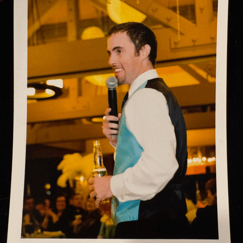 Just before my husband, Joe, and I met, he gave a best man’s speech at his friend Mark and Courtney’s wedding. I was lucky enough to see a recording of his speech, after the newly married couple insisted that I watch it.