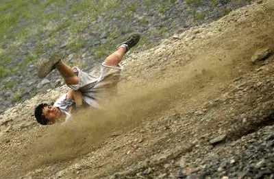 To help prepare us all for the unknown, the safety meeting features an informative video. The film starts off showing racers, some bloodied and bruised, making their way down the mountain. Then, it shows footage of face plants and cliff mishaps. Bodies tumbled instead of remaining upright while loose boulders zoomed past the heads of young racers.